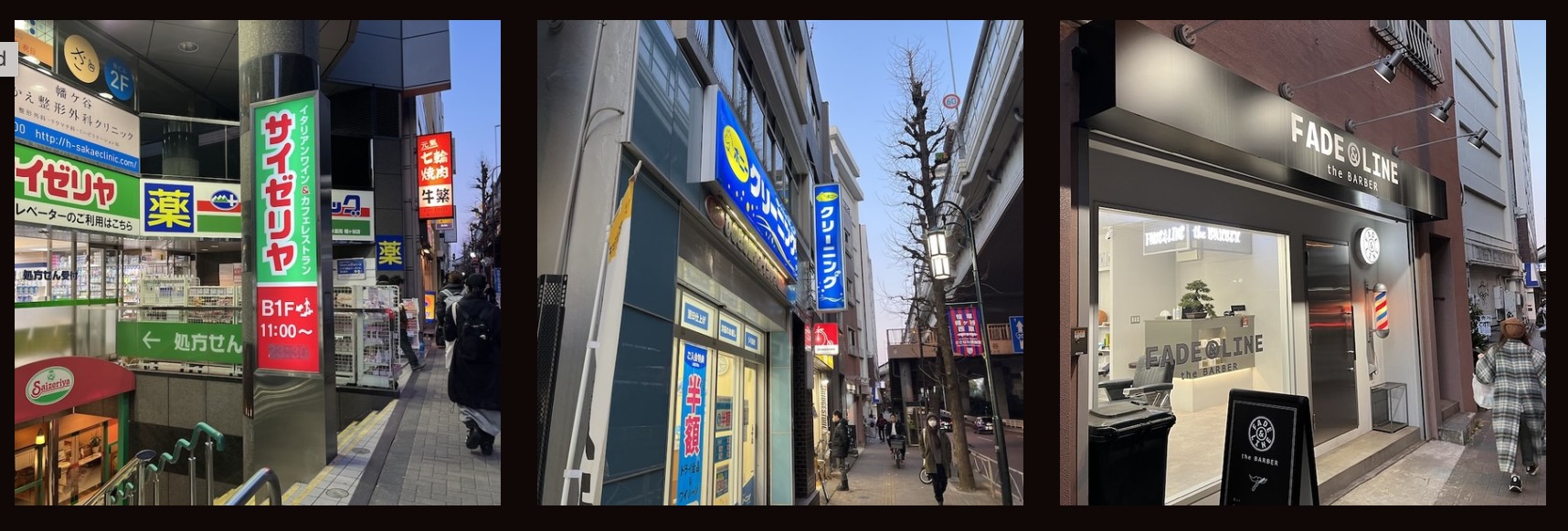 Turn LEFT. Walk about 2 minutes, past the Saizeria, the Pony Cleaners, and the Barber Shop!